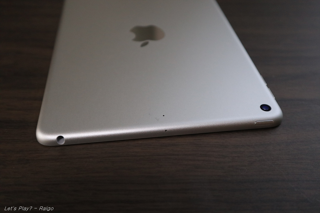 후면부엔 애플로고 그리고 카메라, 마이크가 위치해 있다. 아이패드 미니 4세대와 미묘하게 젠더나 버튼의 위치가 다르다고 한다. 케이스 팔아먹으려고 전체적인 금형은 똑같은데 미묘하게 바꿔서 내놨다. 돈 뜯어먹는데는 선수다. 점점 없애가는 추세인 이어폰 잭이 달려있는게 특징이라면 특징.